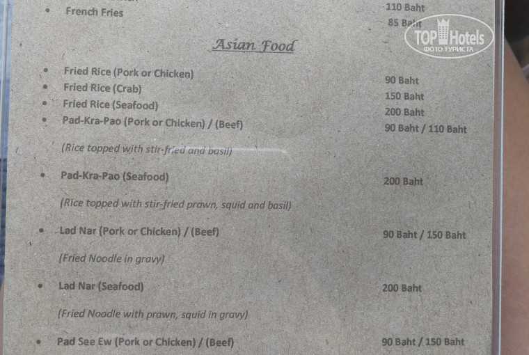 В ресторане можно заказать питание по меню, напитки. Выбор маленький.
