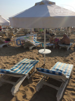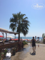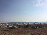 Пляж: собственный пляж в трех минутах ходьбы от отеля. На пляже бесплатные лежаки и зонтики. Есть мужчинка, который этот пляж обслуживает, к 7 вечера убирает матрасы с лежаков, но к твоему приходу утром ложит матрас на понравившийся тебе лежак. Пляжик убирает от муссора. Вода невероятная! Прозрачная! На глубине возле буйков видны не только твои ноги, но и рельеф дна моря - это невероятно. Медуз не было. На море был все время штиль, но под конец оно начало волноваться и на берег начало выбрасывать водоросли, похожие на морскую капусту в небольшом колличестве. С пляжа персонал эти водоросли убирает. Единственный минус, это то, что на пляже курят, лежа впереди тебя...На пляже очень много семей с детками, так как поначалу вход в море мелкий. Сам пляж - песочек, на берегу в перемешку с ракушками.