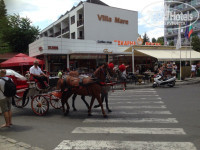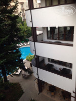 Отель расположен близко к автовокзалу и остановке, не очень далеко от пляжа. На первом автобусе за 15 минут можно доехать до Несебра, обойдётся это в 1 лев и 30 стотинок (в одну сторону). Так что не верьте турагенствам, которые предлагают вам прокатиться до Несебра и обратно левов так за 50. Тут не всё так дорого, как говорят. Нужно просто оставаться бдительными. Пляж примерно на 85% забит платными зонтами и шезлонгами, аренда которых обойдётся вам по 10 левов за зонт и по 10 левов за лежак за день. Дороговато, верно? Уж лучше купить себе зонт и полотенце/подстилку, цены на эти вещи там порой даже дешевле, чем за границей. Бесплатная часть пляжа часто занимает не самую удачную часть побережья, например в море может быть не самое хорошее дно, разделительные верёвки, или же вам попадется стоянка водных скутеров. Поэтому будьте готовы к тому, что нужно будет проплыть немножко, чтобы выйти в "нормальную" часть моря. Вода иногда очень чистая, а иногда чуть ли не вся в водорослях и полумёртвых медузах. Часто видела в море предметы женской личной гигиены, использованные подгузники и целлофановые кульки. Жаль, что у отеля нет своего пляжа. А бассейн у отеля, кстати, очень сильно пахнет хлоркой.