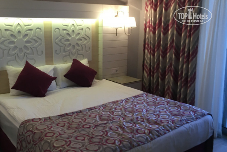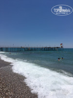 Отдыхала с сыном 12 лет. Отель большой, красивый, новый. В номере чистенько, уютно. В фойе очень красиво. Архитектор молодец. Питание нормальное. До моря мне показалось далековато-то. Но по времени минут 7. В море галька. Как по мне, так крупноватая. Мне заходить было больно. В следующий раз куплю специальный тапочки. Возле бассейна намного веселее. Все время играет музыка+тут же иногда развлекают аниматоры (аквааэробика+конкурсы). После обеда, часа в 4, на втором этаже бара у бассейна, можно поучиться танцевать (зумба) . Из экскурсий брали на яхту (небольшая, владелец турок). Покатал,