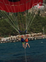 Пляж. Ну про природу даже писать не буду. Шикарная, море прозрачное, горы - восторг. Вход каменистый, дочка ходила босиком, мы в коралках. В паре метров от берега песочек. Из воды не хотелось выходить. Шезлонги приходилось занимать утром, только потом идти на завтрак. Потом можно и не найти. То же самое и с бассейном. Платные бунгало не брали. Ляпота и красота. Море, горы, солнце - то, ради чего и ехали на отдых. Летали с парашютом. На 2-х 70$. За 3 фотки на диске отдали 10$.
