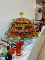 А еще рыбный день по пятницам, своей праздничной атмосферой очень радовал. С раками на большом многоэтажном подносе и напитками в арбузах. На гриле рыбку жарят на выбор -- сибас, дораду и другую. Тунца, вкусные мидии очень в кляре и фритюре, жаль только, что огромные очереди сразу выстраивались, и стоять не всегда хотелось.