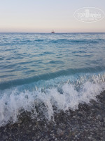 Что очень не понравилось: несколько метров перед кромкой моря ужасно грязные. Как мы приехали, тот мусор, что я видела, так там и продолжил лежать до нашего отъезда. Еле-еле себя остановила, чтобы не взять мусорный мешок и не пойти самой вдоль кромки моря все это вычистить от бутылочных пробок, окурков, каких-то ошметок пластиковых, наносимых волной или людьми. У лежаков сотрудники отеля еще худо-бедно убирают в течение дня (вытряхивают мусор из мусорных горшков), но лежаки не протирались ни разу! Я каждое утро сама это делала салфетками, чтобы постелить полотенца и не вляпаться в подтеки от чего-то сладкого, липкого и грязного.