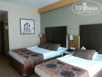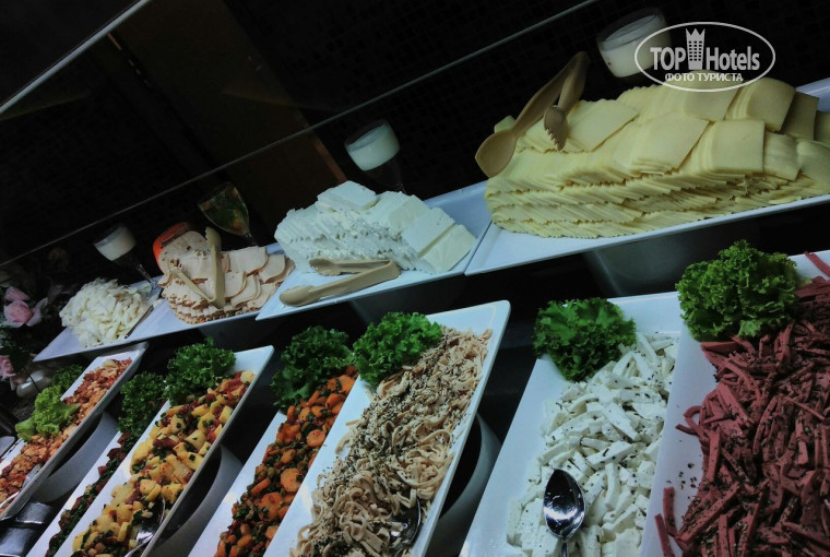 Еда. Еды много. На завтрак несколько тарелок с хлопьями и йогурты, каши, панкейки, яйца вареные и жаренные, фрукты, овощи, сухофрукты, 4 стола с выпечкой. На обед и ужин жаренная картошка и картошка фри, курица, индейка, рыба, безумно вкусный рис, более 30 наименований сладостей (правда почти все они турецкие). На обед и ужин давали два различных супа-пюре. Много хлеба, вкусного. В 12 открывался снэк бар на пляже, можно было пообедать (или дообедать) там. Там была картошка фри, можно было соорудить себе гамбургеры. Работал до 16:00. Рядом бар с пивом и газировкой, чай и кофе, так же мороженое (платно). В долларах и евро цена разная, в магазине в лобби одна и та же в обеих валютах. Есть ресторан а-ля карт, в который можно записаться заранее один раз за тур, османская кухня. Официанты работают быстро, убирают посуду, подносят напитки, меняют скатерти.