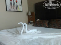 Номер. Убирали каждый день, несколько раз меняли пастельное белье. Каждый день ставили 1.5л воды, даже если не выпивали. К концу отдыха у нас было 2 бутылки даже не открытых. В номере две кровати-двухспалка и односпалка. Каждый день делали то лебедей, то сердечки, то бантики. Вместительный шкаф и несколько маленьких шкафчиков. Мыло-рыльные принадлежности докладывали каждый день-2 геля для душа и два шампуня, даже если они не были израсходованы. Через 10 дней у нас скопилось 5 шампуней и 6 гелей. Также изначально было два кусочка мыла, шапочка для душа, ватные диски и несколько палочек. В номере есть кондиционер и теплое одеяло (пригодилось, чтобы спать под кондиционером и не простыть).
