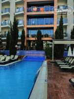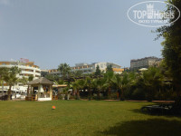 Территория. Территория отеля достаточно большая. 4 бассейна (1 большой 1.10-1.6м глубиной, 1 поменьше, 1 с горками (3 горки) и 1 для малышей. Также есть частный бассейн с выходом из номеров на 1 этаже 3 корпуса. Много зелени, цветов, различные качельки-отдыхалки. Есть детский уголок с качельками и горкой около амфитеатра. Несколько баров. Бесплатный гольф (инвентарь выдается под депозит 10$), настольный теннис, волейбол.