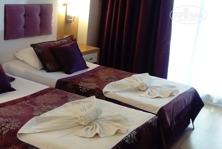 С аэропорта везли часа 2,5,во многих отзывах пишут, что если приезжаешь поздно, то покормят-неправда,тут о таком даже и не знают, многие отдыхающие возмущаются по этому поводу.Привезли около 22 вечера, пока заселят в номер ждала часа 1,5,почему так долго не смогли обьяснить, так как по-русски на ресепшене говорит одна женщина, и то не очень хорошо.Заселили,и то сказали сразу вещи не распаковывать, так как на следующий день переселят в другой номер. По мне это не очень хорошо, хочется разложить спокойно вещи и жить, а не вот так вот.Вайфай ловит только в районе ресепшена, иногда отключают свет, включают генератор, свет в отеле как бы есть, но вайфая нет.По поводу питания, питание 2+,в основном все ждали, когда будут кормить и налетали как саранча, в основном на мясо, которое не пополняю.пополняли только арбузы. Из фруктов арбуз, виноград, слива, абрикос.Непонятные салаты и некоторые блюда очень острые.Автомат с порошковыми концентрированными соками стоял в баре и в о время еды в ресторане, также кофе и чай, обычную воду тоже можно было набрать, но её качество под вопросом, и то как сказал гид, это только в этом отеле так вот разрешают набирать воду, Бар с 11 до 22.напитки безалкогольные бесплатно и алкогольные местного производства, пиво среднее, вино отвратительное, хорошее вино здесь стоит от 25 долларов за бутылку, водка, раки.Честно скажу, пила пиво, раки, воду и не отравилась. Раки в принципе нормальная водка, но у неё специфический вкус. На территории есть маленький бассейн, но из-за вируса коксаки не советовала бы, так как ни разу не видела, чтобы его как-то обрабатывали, а на жаре микробы быстрее размножаются. По поводу уборки в номере, уборщики убирают нормально, если только положить доллар на кровать, а так только тряпкой по полу поводят и мусор заберут,так как после их уборки и пятна на столе и волосы на полу оставались. Есть сейф у ресепшена, доллар в сутки, честно, всё оставляла в номере, ничего не украли, но многие боятся и сдают. В коридорах и на ресепшене есть видеокамеры. В отеле у бассейна есть лежаки и зонтики бесплатно. На пляже платно, два лежака и зонт 10 лир в сутки, это где-то 4 доллара, просто зонт 5 лир в сутки. Лучше брать в отеле, так как это дешевле. Просто загорать на своём полотенце - бесплатно. На первых этажах шумно часов до 12 и с утра очень громко разговаривают уборщицы, из-за этого очень плохо спится. Пляж недалеко, буквально 3 минуты. Вода в Турции греется на крышах в бочках, поэтому бывало такое, что вода была слегка тёплой. Хозяин, да, ходит из себя весь важный, вы сразу поймёте, что это он, чувствуется ненависть к русским, хоть и улыбается. В 12 часов выселяют, срезают браслет и без него уже не поесть, ни попить, многие люди этим возмущены, так как день оплачен. За 6 часов до вылета вас забирают назад на автобусе. Из экскурсий, туроператор был от библиоглобуса, fit tours, была в Памуккале, 65 долларов, очень долго ехать, но это того стоит, в пути кормили 3 раза и заезжали на большую текстильную фабрику, за вином, сладостями и оливковым маслом. По времени забирают в 4 утра, привозят около 12 ночи. Была также на обзорной экскурсии по Алании, экскурсия ужасная, не советую, тоже самое можно посмотреть самим, доехав на автобусе и чуть чуть пройдя пешком, стоимость 30 долларов, забирают в 10, привозят около 18, из этого времени три часа тратятся на ненужные магазин