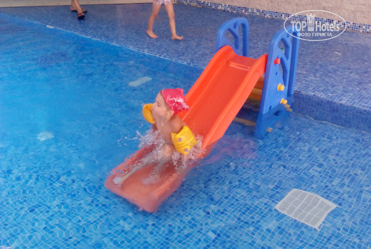 детей. Из минусов- грязь на пляже, особо не убирают. Видели, как убирают на соседней территории, мосора нет совсем. А здесь все , что едят, на песке и валяется + окурки от сигарет. Отдельно хочу написать про детский бассейн. Отель выбирали специально с маленьким бассейном для 4-х летней дочери.Но, когда я увидела этот бассейн, была немного удивлена. Дело в том, что этот бассейн крытый, лишь по середине дыра метр на метр для солнца. За счёт этого вода в бассейне ледяная, во взрослом на много теплее. Горка , вообще, не понятная, пластиковая, как для песочной площадки и ничем не закреплена. В общем дочке в итоге понравилось купаться во взрослом бассейне с нарукавниками. Лежаки возле бассейна занимают уже с 7 утра. В 9 уже мест нет.Возле бассейна есть детская комната, хотя ее назначения я не поняла. Детей туда не завлекали и тем более не развлекали. Девушка, которая там работает, постоянно сидит в телефоне с отрешенным лицом. Когда мы с дочкой туда зашли, на нас не обратили внимания. Мы сами попросили листочек, карандаши, порисовали в полной тишине и ушли((. Девушка аниматор все это время молча наблюдала за нами(единственными посетителями детской комнаты). Про номера ничего плохого не скажу, кроме уборки. Грязные полотенца 2 дня бросали на пол, чтоб их поменяли. Но , уборщица упорно поднимала их , складывала и вешала обратно, пока я лично не попросила ещё поменять полотенца. В номере, такое чувство, что только застилали кровать, я уже хотела просить веник, чтоб подмести. За две недели, пропылесосили раза 3. Про еду ничего плохого не скажу. Голодными не ходили ни мы, ни дети. Дети в основном ели макароны, картофель фри и нагетсы. Мясо было на ужин в виде рагу, так же жарили на улице филе курицы. Очень понравились кабачки в кляре, которые тоже жарили на улице периодически. По утрам ( правда через день) очень вкусные оладушки. Писали здесь, что питание однообразное, так не ешьте все сразу и будет вам разнообразие. Из фруктов арбуз сладкий, дыни не очень, не плохие апельсины, вкусный виноград. Анимация не особо. Ребята, правда , старались. Мы ходили только на детскую дискотеку, остальное вечернее шоу быстро надоело. Экскурсии брали у отельного гида. В восторге от экскурсии в Израиль, но с детьми не советую,очень тяжело. Ну, а так не плохо, хотя уборка и номеров и самой территории оставляет желать лучшего
