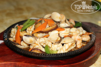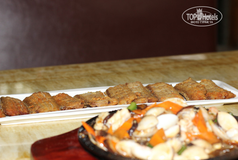 Мы брали тур с завтраками. Ужины не были включены. Завтраки по типу шведского стола. Мало мяса, сосиски и фрикадельки не понятно из чего были сделаны. Нам не понравились. Из фруктов чаще всего давали арбуз, дыню, манго, лимон. Овощи обычно подавали в тушеном виде в сладком соевом соусе. На столах в ресторанах нет соли и перца. Если любите солить или перчить блюда, нужно брать с собой! Соков обычно было три вида, соки свежевыжатые. Яичницы простые, однообразные, здесь никто не готовит в живую. В других странах я встречала такое, что прямо перед тобой тебе могут пожарить, например, омлет с выбранными тобой добавками (бекон, помидоры и т.п.). Здесь такого нет. Кухня находится отдельно от ресторана. Для русских ресторан на первом этаже направо отдельно от китайцев. Однако и тут их можно было встретить, видимо, когда им не хватало места в своем ресторане. Не сказать, что отельная кухня производит какое-то неизгладимое впечатление или радует кулинарными шедеврами, но наесться с утра можно было. С собой еду уносить запрещено. На каких-то курортах я брала с собой фрукты и йогурты, которые не успевала съесть, здесь такое не прокатит. На ужин как-то мы ходили в столовую, расположенную на территории отеля. Туда заходишь и не понимаешь, какое блюдо выбрать, всё на китайском, взяли оставшиеся креветки и рыбу, получилось недорого в районе 80 юань, но не наелись, рыба оказалась сухой как сухарик и невкусной. На кассе не было ни пакетиков с чаем, ни кипятка, так и не смогли объяснить, что хотим заказать просто горячий чёрный, а не холодный зеленый чай. В общем ушли оттуда недовольные. В последующие дни ездили на ужин в ресторначик рядом с отелем Wyndham. Забирал нас из отеля на белом минивене хозяин этого ресторанчика совершенно бесплатно, а потом отвозил обратно в отель вместе с другими отдыхающими, когда поужинаем. Мог ездить так несколько раз, пока всех не отвезет обратно. Записываться в этот ресторанчик нужно было предварительно где-то за час у местного гида Чингиза или Миши. Они звонили этому хозяину, и он нас забирал. Меню этого ресторана есть и на русском языке в отеле на столе у русских гидов (в том же помещении, где ресепшн). Перед поездкой мы не знали, сколько брать с собой денег на ужины. Поесть на двоих стоит в районе 150-200 юаней вместе с напитками (это, например, два горячих блюда+какой-нибудь салат). На наши рубли это в районе 1500-2000 рублей. Порции в том ресторанчике очень большие и вкусные, все можно и не съесть, тогда они остатки недоеденных блюд складывают в контейнер и в пакет. Еще пробовали дойти самостоятельно до какого-нибудь местного ресторана: вышли из территории аллохи и пошли налево, шли минут 30-35, прошли заправку и какой-то туристический центр, дошли до здания похожего на правительственное через дорогу, а напротив него на нашей стороне дороги (на той же стороне, что и Алоха) зашли в китайский ресторан с красным убранством. Нам принесли меню, состоящего из сотни красивых блюд по разным ценам, но из чего они состоят - не понятно.