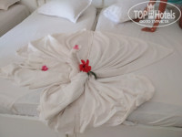 Отзыв пишу первый раз, поэтому не судите строго. Пишу пока свежи воспоминания, вернулись только сегодня (30.08.17 г.) Целый месяц искали отель, были перечитаны отзывы на многих сайтах! Долго сомневались т.к. есть положительные, а также отрицательные отзывы. Ну а 3 звёзды вообще смущали. Изначально Рассматривали Турцию и 5ти звездночный отель. Но потом решили рассмотреть Тунис и отель 3х звёзд и ни сколько не пожалели. Итак, отдых наш длился с 21 по 29 августа 2017 г. Отдыхали мы 3мя семьями 6 взрослых и 5 детей от 3 до 11 лет. Приехали в отель в 8 ч. Вечера. Заполнили анкеты и отправились на ужин. Пока ужинали нам подготовили номера, по возвращению получили на ресепшене ключи и пошли заселяться. За хорошие номера ни кому ни чего не доплачивали. Мы свой номер вообще сами нашли. (Где какие номера расположены можно понять по указателям, которые находятся не далеко от центрального входа). Остальных из нашей компании провожали, ребята дали по доллару. Номера были в разных зданиях, на 1, 2 и 3 этажах. Сначала было небольшое огорчение из-за того что номера не рядом, но потом этого ни кто и не заметил. Номера простые две кровати, + дополнительно ставят кровать, встроенный шкаф, диванчик, 2 прикроватных столика, у нас в номере было 2 больших зеркала, у ребят для детей были 2х ярусные кровати, телевизор и небольшой балкончик. Окна из нашего номера выходили на аквапарк, у остальных вид был на море и на спортивный корт. Вообще отель находится на первой береговой линии, прямо на пляже. Читала много негативных отзывов о том что с лева от отеля и с права находятся заброшенные отели, которые портят вид, так же многих не устраивал вид на расположенный не подалеку завод, впадающую в море реку и прочее. Ничего страшного в этом нет. Никакие отели и заводы вида не портят. Я бы вообще не заметила что они заброшенные, если бы мне не сказал супруг, ну а чтобы это заметить до них надо немало пройти, к тому же все в зелени и за заборами. Лично я ни какой реки с пляжа не заметила, видимо до ее тоже нужно идти. Супруг ходил вдоль пляжа, неподалеку расположена куча камней, наподобие волнореза, так вот он сказал что на камнях крабы бегают, а в море много рыбы плавает. Если бы эта река была загрязнена наверное рыба и ? рядом с ней не обитали (это мое мнение). Вообщем меня это не напрягало. Первые два дня море было мутное, остальные дни вода была прозрачная. Заход в море классный. Для детей вообще красота. Можно не бояться, мелко метров 20-30 все детишки на этой мелкоте "плюхаются", некоторые собирают ракушки. Песок на пляже супер! Как мука! Слева находятся катамараны и байдарки, люди на них плавают все бесплатно. Справа катают на банане, на каком то большом плоту, также можно покататься на водном мотоцикле и полетать на парашюте, это уже за плату, прайс с ценами висит на сарайчике в котором хранится инвентарь. У нас ребята договаривались по цене дешевле чем по прайсу, с работниками в тайне от начальства. На территории отеля есть несколько бассейнов. Самый большой находится около моря. У него проходит анимация в течение дня и вечером. Мы занимали лежаки около бассейна. Купаться ходили то в бассейн то на море. Очень удобно. На пляже толкучки например как в Сочи нет! Лежаки свободные всегда есть. Для маленьких детей есть небольшой бассейн с 2мя горками, глубиной 60 см. Глубина бассейнов указана на плитке на полу. Анимация
