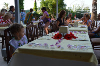 Не помню по поводу детской еды, но старшая дочь ела уже взрослую пищу, а маленькому мы брали с собой пюрешки и творожки (хранили в номере в холодильнике) поэтому проблем, в принципе, не было.