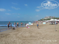 5. Пляж просто великолепный! Чистый песочек, который плавно уходит в глубину. Очень комфортно купаться. Рядом пантон, по которому можно сразу нырнуть в глубину. Купаться можно по всему побережью, но самое удобное место, это там, куда ходят плавать гости 5* отеля Хорус, который стоит перед нашим отелем. Собственно, все гости нашего отеля плавают тут же. Пляж называется Сэндибич. Только из-за отсутствия у отеля участка выкупленной земли на пляже, ему и не дают 4-ю звезду. Но, так как в Турции пляжи муниципальные и плавать можно везде, это вовсе не принципиально.