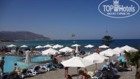 Территория отеля сравнительно большая и ухоженная. Постоянно работают садовники. На территории много различных растений, цветов и деревьев, очень красиво. Бассейн с морской водой расположен практически на берегу. Лежаки расположены около бассейна, на лужайке у таверны и на пляже. Удобно расположены душевые, на выходе с пляжа, перед бассейном. Вход в море напротив отеля каменистый, но немного левее хороший песчаный и пологий. Во время нашего отдыха море было чистое, иногда было небольшое количество водорослей.