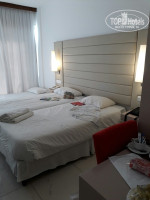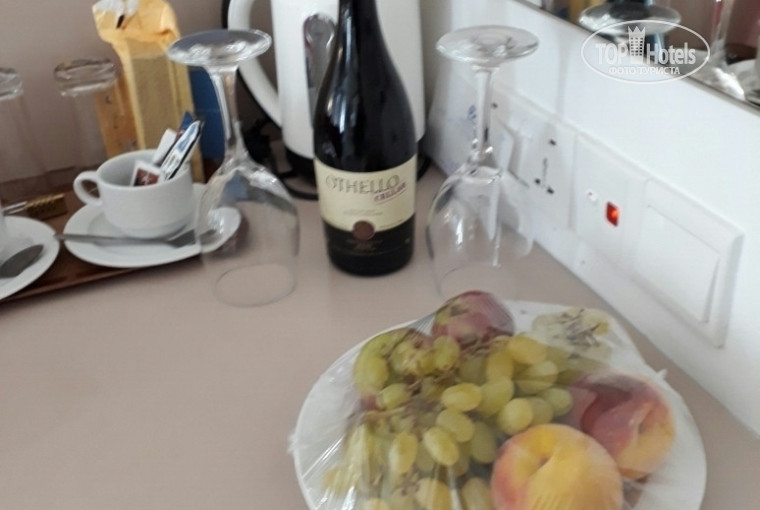 Заранее писала отелю с просьба заселения в новом корпусе, спасибо Christos. Приехали в отель в 10-30 одели нам браслеты на перекус и попросили подождать до 11 -00, и через 30 минут уже дали ключи от номера в новом корпусе на 4-м этаже с видом на море и бассейны. В номере нас ждала бутылка вина и тарелочка фруктов. Приятно!
