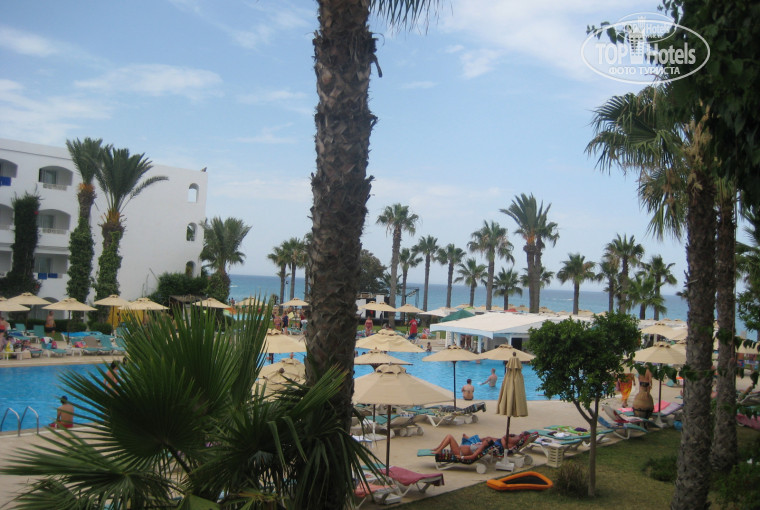 Отдыхала с дочкой 8 лет и с подругой.Бронировали отель в январе, получилось меньше 90 т. на троих. Перелет туда без задержек, все замечательно. Обратно-рейс перенесли на 3 часа позднее, нам только лучше, успели позавтракать и поспали подольше. Трансфер без нареканий.При заселени (начитавшись отзывов) сразу договорились за 20 баксов о хорошем номере.Посмотрели, все понравилось, заехали.Были проблемы с незакрывающейся дверью балкона и отсутсвием вешалок. В этом нам смогла помочь только Инна- спасибо ей огромное! Персонал отеля не понимают русский и английский.Инна все передала на рецепшен, дверь починили, вешалки, правда,принесли дня через три.Теперь о море, замечательное, пляж- отличный.Медузы были один день, дочку укусили(брала с собой крем укус-оф).Лежаков хватало, если не находили, то сервисмен у бассейна интересовался , куда принести и приносил. Но мы в основном купались в море,бассейн один-постоянно был заполнен местными отдыхающими. Анимация на уровне самодеятельности.Питание для четверки замечательное, никогда голодными не оставались.Вино и пиво-хорошее, крепкие напитки не употребляли.Экскурсии не брали, по-скольку в Тунисе не первый раз.С безопасностью все в порядке и на территории и за ней, все спокойно. Масло покупали в магазине в отеле и сувениры, хозяин хорошо уступает, торгуйтесь.Вывод хороший отель для тюленьего отдыха за такие деньги.
