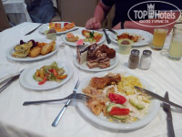 Приехали в отель около 6 утра. Сразу не заселили! Либо денег хотели, либо реально не было номеров свободных. А приехали то мы в то утро единственные с мужем (неужели не было 1 свободного номера?!). Денег не стали вкладывать в паспорт. Пошли гулять по территории. В 8 утра нас снова не заселили, указав на табличку "Заселение в 14 ч." Кстати, таблички, указатели, афиши - на всяких языках, в том числе и на русском! Кто бы что ни говорил, что якобы там никто не понимает русский язык - враньё! Хоть немного, но персонал знает русский язык! Они даже деньги при обмене считают на русском языке!. Персонал и аниматоры понимают хорошо по-русски, даже могут войти в диалог! Так вот, погуляв по территории, искупавшись в море и бассейне (купальники, сланцы мы брали заранее в рюкзак), пошли снова на ресепшн заселяться. Ура! В 12 часов увидев наши печальные, уставшие лица, нас заселили с мужем... в номер для 4-ых! Т.е. там было 4 кровати! Номер был на 2 этаже, с видом на город. Менять не стали, мы не особо придирчивые.