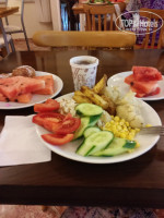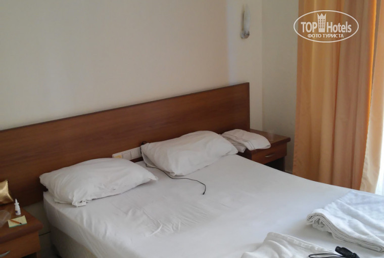 Отдыхала в начале сентября одна. Заселили меня в номер с двуспальной кроватью, кондиционером, телевизором и сейфом, которым я не пользовалась. Душ кабинка, туалет, умывальник, фен - все функционировало отлично. Уборка ежедневная. Меня все устраивало. Турецкая кухня- на любителя, мне она не нравится, но можно выбрать то, что тебе подходит. Каша рисовая, например, была совершенно пресная, но ведь есть отдыхающие диабетики, поэтому можно добавить мед или варенье для вкуса. много овощей и зелени, сыр-брынза нескольких видов. Было достаточно еды, я наедалась и мне не требовалось перекусов до следующего приема пищи.