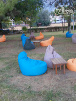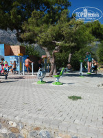 Пляж - это минус. Очень каменистый и скученный, один на три отеля и если не займешь до завтрака местечко, все лежаки будут заняты. Совсем необязательно это делать в 5 утра, как написали некоторые отдыхающие. До завтрака можно найти удобное место под тентом. Многие отдыхающие ходили на муниципальный пляж, в 5-7 минутах от отеля. Там лучше. Все цивильно - все есть: тенты, лежаки, душевые, переодевалки, тренажеры для занятий спортом, хороший парк с фонтанчиком, кафешки с рекламными зазывалками (см. фото)