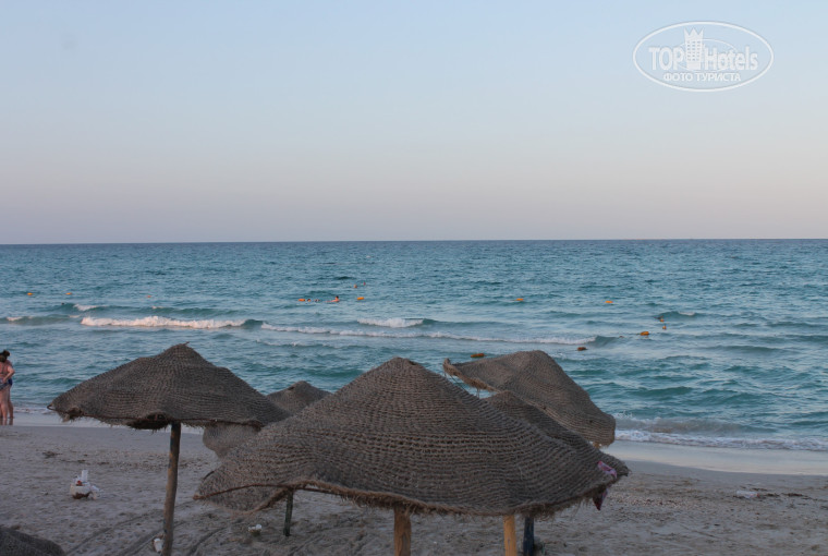 Море чудесное: мелкий пологий вход, прозрачное, чистое, белый песок и мелкие ракушки, которые совсем не колют ноги, а приятно массируют их при волнах. Три дня был сильный ветер, немного дождь, а когда дождя не было- были сильные волны, но туристов эти волны только забавили, своего рода гидромассаж и акваэробика ), правда море после таких ветров стало ощутимо холоднее по сравнению с первыми днями отдыха. Для кого то долгий пологий вход это минус, но я плохо плаваю потому для меня это был плюс, у буйков где-то по подбородок глубина, кому нужно больше заплывают за буйки. Медуз не было, гид сказала, что только в Махдии далеко в море стоят какие-то сетки, чтобы медузы не приплывали, но мы не проверяли правда или нет).