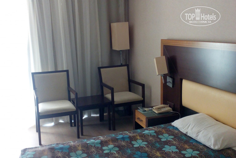 Отдыхала в этом отеле с дочерью вдвоем. С 23 августа по 01 сентября. Отель понравился вполне. Уборка ежедневно, смена полотенец также. У нас в номере была чистота идеальная, хотя гальку с пляжа мы приносили в купальниках регулярно. В ресторане официанты со столов убираю практически моментально, грязные тарелки на столах не стоят. Очень вежливые и приветливые. Директор Сесгин очень вежлив и внимателен. Всегда узнает как нравится и все ли в порядке. В отеле сауна и хамам с 12 до 14 бесплатно, очень кстати, на улице два бассейна, один из них с горкой для детей. Отель на первой линии пляжа "Клеопатра" Пляж просто сказочный - очень понравилась мелкая галька (к телу не липнет) и заходить в море одно наслаждение. Дочь часами лежала на берегу и качалась на волнах. Правда первые два дня, пока не научились заходить в море , нас немного поболтало волнами. Питание довольно таки приемлемое: много десертов, курица или индейка, нагетсы, рыба, конечно много сыров. через день на улице что-то готовят- очень вкусно. Плов с морепродуктами-вкусно очень. через день мороженое. Фрукты каждый день. Мы с дочей поднимались в крепость пешком- хотя там есть подъемники, но мы решили прогуляться для разнообразия. 1,5 часа в гору- для нас было нормально, но с детьми и тем, кто мало ходит не советую пешком идти. Но сверху вид обалденный. Подняться на подъемнике с утра - того стоит. Подъемник вроде 20 лир. вход в крепость 14 лир, дети до 12 лет бесплатно. Также брали аквапарк от нашего гида. Lend of Legend - нам очень понравилось, но нехватило времени. Американские горки просто супер- у меня чуть сердце не остановилось, но дочь была в восторге. Также там можно плавать с дельфинами, после дельфин шоу, за дополнительную плату, вроде 30 долларов. Сама поездка в аквапарк 65 дол. на взрсл. и 45 дол. на ребенка до 12 лет. Наверное своим ходом дешевле было бы. Но мы не пожалели. Вообщем нам очень понравилось. Практически центр города, мы целыми вечерами гулляли. Теперь даже не хочется ездить в поселки в Турции. Шопинг классный- торгуются очень хорошо. Везде берут карту виза к оплате- почти везде без комиссии. Очень много обменников, где можно поменять валюту. Неподалеку есть Deniz Bank, там можно снять наличку с карты без комиссии. Из минусов только отсутствие территории у отеля, отсутствие аннимации, и плохой вай фай. Но нам все это было ни к чему, гуляли мы в городе все свободное время.