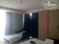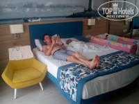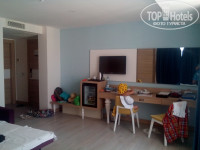 1. Заселение у нас было в полпервого ночи, разместили быстро и в нужный номер. У нас был забронирован Фэмили Делюкс - это двухкомнатной номер с двуспальной кроватью в одной комнате и дополнительными спальными местами в другой (раскладушка, раскладной диванчик и кресло). Мы ездили семьёй с двумя малышами (2г и 5лет) и с бабушкой, в номере была ещё и детская кроватка. Места всем хватило. Наш номер был на 6м этаже и у него был огромный угловой балкон с видом на горы и немного на море, плюс второй балкон в спальне. В номере работал кондиционер, был сейф (пользование платное, $2/сут), один санузел с душем. Уборка каждый день (нужно только включить зелёную лампочку возле комнаты) но поверхностная - пол, вынос мусора, долив мыла, добавка воды в холодильник). Полотенца меняли по запросу (грязные нужно бросить на пол, тогда горничная выдаст новые), постель поменяли за неделю один раз. Пляжные полотенца, которые выдали в спа-центре, оказались сомнительной чистоты - с пятнами и потёками, так что проверяйте на месте.