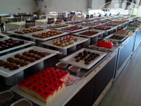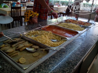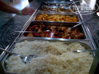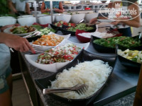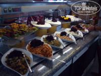 2. Питание хорошее. Большой выбор салатов, солений, свежих овощей, сыров, чай-кофе, соки, вода. На завтрак всегда яичница (в воскресенье- оладьи), варёные яйца, пара каш, сухие завтраки, халва, булочки, йогурты, варенье. На обед всегда несколько видов мяса, пара супов, на гарнир обычно рис, картофель, макароны, овощи в сыром и горячем виде, и всегда много сладостей. На ужин овощи-гриль, рыба, мясо, котлетки, наггетсы, гарниры, сладости. Вино и пиво доступны с 10:30, был и алкоголь покрепче местного производства, вечером в pool-bar делали цветные коктейли. Мороженое дают утром на пляже (часов в 10) и вечером возле Бенджамин-бара, днём с 11 до 16 можно перекусить лепёшками Гёзлеме и айраном, есть кофе-брейк в 16:00 с печеньками и кексами. В общем, голодными не были ни разу ;)