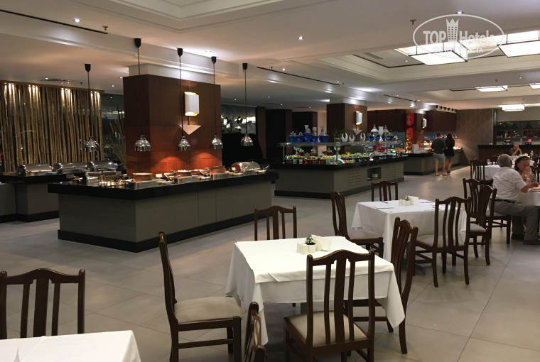 Разнообразные блюда на шведском столе, есть блюда на гриле, но нет морепродуктов , из рыбы подаются только дорадо и 1 раз подавали раки.