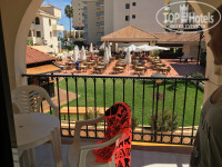 Отель расположен на первой береговой линии, сразу через дорогу пляж. Отель довольно большой, по сравнению с соседскими. Наш номер выходил на теннисные корты, а за ними паслись чьи-то лошадки. Мы постоянно тырили яблочки с завтрака и ходили их кормить. Далее, заметили что сюда же по утрам прилетает стая зеленых попугайчиков Калита, тоже очень поднимало настроение их кормить, они так забавно кушали, помогая себе лапками.