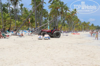 Пляж великолепен. До пляжа максимум 7 минут хода, не напрягает. Лежаков всегда много свободных, ну а тень вы регулируете сами. Бар на пляже не работал и коктейли можно было только взять у третьего по счету бара от входа, напротив волейбольной площадки. Почему нам (с синими браслетиками) не давали напитки у двух других баров сети Riu не знаю. Поначалу напрягали торговцы, которые предлагают товар, но потом по мере укрепления вашего загара они к вам не пристают.