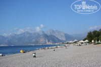 Собственный пляж отеля (участок на городском пляже Коньяалты, вход N3) - это сочинская копия эпохи 70х и даже хуже! Очень мало лежаков, а те что есть стоят очень близко, как говориться нога соседа вам в лицо. Кроме того, утром уже в 9 часов ВСЕ ЛЕЖАКИ заняты! И самое ужасное, то, что на пляже стоят метровые колонки из которых звучит весь день тяжелый, ужасный клубняк!