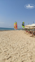 С погодой как то не очень повезло температура на улице в среднем была +25 и постоянно дул ветер, а вечером температура опускалась до 16-17 градусов, так что приходилось одевать кофту или свитерок. Море, на мой взгляд, было более чем прохладное и с учетом постоянно дующего ветра и в принципе не жаркой погоды заходить в него было прямо скажем неприятно, но это уже к отелю не имеет отношения. Пляж вполне ухоженный, но поражает свинство отдыхающих, бросающих окурки в песок, хотя к каждому зонтику прикручено ведерко для мусора.