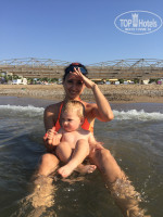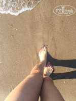 Море песка прям порог,много много ,мягкий песочик ,конечно он баламутит море ,от песка мутное море ,но не грязное !!!!