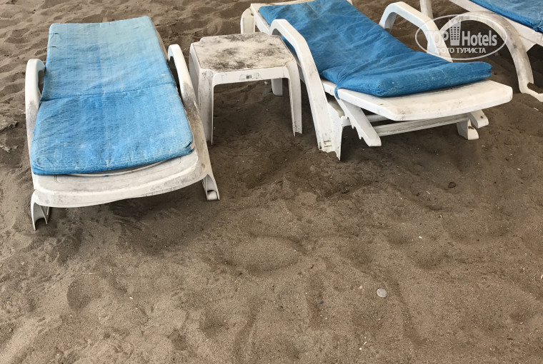 Далее кухня....посуда грязная, если вы любите говядину и приличную рыбу, тут Ее не дождаться, была одна курица и то в очереди пару минут надо было ща ней постоять, ну и надеяться что вам останется и не придётся ждать ещё минут 10 пока не принесут другую порцию. Мясо, кстати, часто было не прожаренным. Так как персонала не хватало и не успевали просто готовить. Далее пляж и бассейн лежаки грязные! Прям чёрные, сломанные. Туалеты на пляже это вообще отдельная история, про которую даже писать не хочется. Это не вторая линия, нас довозили до пляжа на автобусе старом, который еле еле ехал и чтобы не ездить по несколько раз, всех нас запихивали что можно было даже не держаться за поручни, за счёт "поддержки" с разных сторон. А если не успеешь или не захочешь лезть в толпу, будешь ждать час до след отправления.