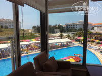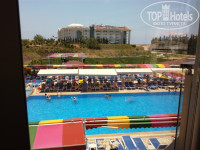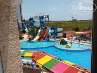 Около бассейна и на пляже много лежаков, места всегда всем хватало, около бассейна есть горки, есть большой бассейн - глубина от 140 см, средний - глубина 110 см и детский бассейн с двумя маленькими горками.