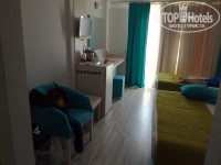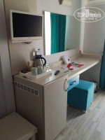 Номер находится на мансарде, вид открывается шикарный!!! На заброшенный отель и на поля, тишина и покой. В номере уютно, есть кондиционер, сейф (бесплатный), минибар (бесплатный, пополняется каждый день разными газировками, минералкой и обычной водой), чай, кофе ,сахар, чайник, телевизор с несколькими русскими каналами. Самое интересное - в отеле нет номеров с цифрой 13 ))))