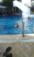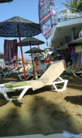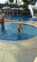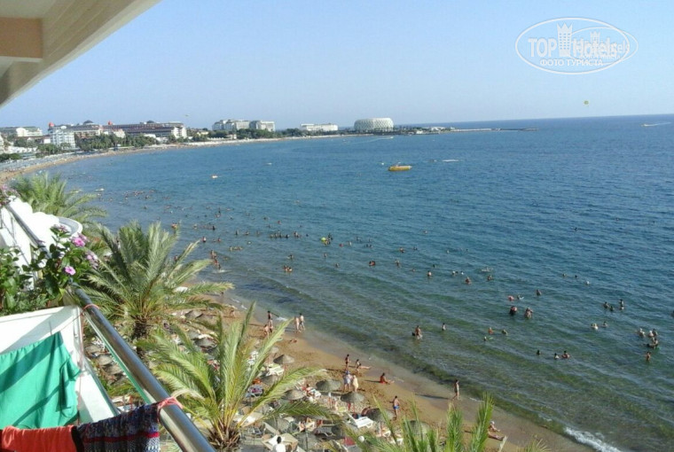 Были в Турции в-первые,сравнить не с чем,но и супер восторженных отзывов про отель сказать не могу.Обычная хорошая 3+. 1.Отель старый,В корпусе В,в который нас поселили на одну ночь,в связи с тем, что мест не было, -просторнее,чище,на полу ковролин,мебель новее и кондиционер работает лучше, в корпусе А номера выходят на море и на ресторан,утром слышно как официанты накрывают на стол))-они намного меньше. Вай -фай хорошо ловит только на рецепции и в снэк баре.Уборка номеров оставляет желать лучшего-видно что полы уборщица протирала на скорую руку,полотенца менять забывала, мыло и шампунь тоже. 2.Питание-нормальное,без изысков!Рис,макароны,курица и мясо ,сосиски,,овощи,зелень, детского стола нет.Каши варить не умеют,супы специфические -по видимому больше для турков.Десерты все либо желейные,либо очень приторные-но пахлава вкусная. Фруктов нет-не знаю кто пишет что арбузы вкусные..ели ли вообще эти люди вкусные арбузы??водянистые и не сладкие,персики,груши и яблоки-деревянные,виноград нормальный,дыни-г...редкостное...Анимации детской нет,есть комната,но в нее никто не ходит. Взрослая: час -шоу тайм..интересно..после чего все шли в бар и по очереди слушали турецкую и русскую музыку.Турки наши песни Валеру,Сережу и черные глаза не понимают..для них было дико смотреть когда наши бежали танцевать,зато под свою входили в транс и плясали всей семьей от мал до велика.Пляж- сам заход в море шикарный:песок,сразу не глубоко,камней нет.лежаки много поломанных,занимать место нужно пораньше.Вообщем если вы с Урала..где всегда зима))), не очень прихотливы,и как и я ездила только чтобы накупаться от души ..то отель вполне подойдет на один раз