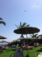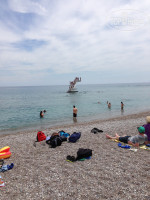 На пляже лежаков не много да и народ весь лежал в основном вокруг бассейна на лужайках.От бассейна до моря один шаг.Пляж средняя галька далеко не нагуляешься.