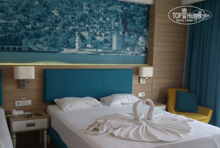Отдыхали с мужем, отель- настоящий оазис, очень много растительности. Перед поездкой на сайте отеля сделали отметку, что мы молодожены (зарегистрировались на сайте отеля, подключились к программе лояльности). Нам на эл.почту выслали сертификат, мы его распечатали и по приезде в отель отдали на ресепшне. На следующий день нас ожидал номер с лебедями из простыней, вино с фруктами в номер, и праздничный ужин в ресторане на двоих, поздравления, торт со свечами. Роскошно провели время. Пляж хорошо оборудован, от корпусов до пляжа минут 5 ходьбы. Заход в море: возле самого берега метра два- дно каменистое (как будто застывшая лава под ногами), а глубже зайдёшь- там чистый песок. Лучше заходить с правой стороны пляжа, там каменистости минимум, песок. Питание замечательное, не успеваешь проголодаться (устали кушать)). Ели есть возможность, лучше брать номера Делюкс в новых корпусах, в старых номера попроще, менее современные. Везде чистота и порядок. Персонал работает слажено, четко и ненавязчиво. Детская анимация- высший пилотаж)), собирает полные залы. В отеле 6 корпусов, три бассейна: два взрослых, один детский с аттракционами, две площадки для детей с батутами и качелями. Для семейного отдыха всё предусмотрено. Советуем заказать массаж, понравилось. Хорошего всем отдыха, с удовольствием вернёмся ещё.