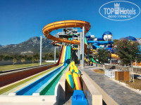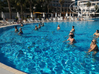 Отдыхали в этом отеле с мужем! Так как приехали в отель в 19 часов, заселили сразу. Номер с видом на море.Мини-бар пополняли ежедневно.Пиво,лимонады,минеральная вода,сладкое. По питанию:разнообразно и вкусно. Морепродуктов не видела,но я их и не люблю. Территория большая, зелёная, есть небольшой пруд с утками. Анимация :аквааэробика (на велотренажёрах в бассейне),дартс,волейбол,футбол и т.д. Дискотека каждый вечер. Аквапарк и Рикси клуб работали.На пляже стоят холодильники с прохладительными напитками, работал бар,пекли вкуснейшие лепёшки. Отдыхом остались очень довольны, Обязательно приедем в этот отель ещё не раз!