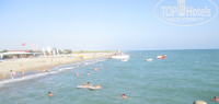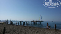 Море теплое было, только иногда холодные потоки. Но это не мешало, так как стояла жара. Можно заходить с берега. Вначале немного камни, потом песочек, можно с пирса. Хотелось бы конечно почище море. Были дни, когда плавали водоросли, или просто мутная вода была. Любили гулять вдоль берега. Доходили до реки. Шезлонгов конечно не хватает. Поэтому мы выбрали политику - приходить ближе к обеду, когда многие уходят с пляжа. И потом были на пляже до вечера. Бар хороший на пляже всегда есть что перекусить. Особенно радовали фрукты и пицца. Не понятно только было отсутствие виски на пляже. Водка, джин есть, а виски нет. Как в принципе и в ресторане. С алкоголем не жадничают. Сколько нужно столько наливают. Вкусные очень коктейли делают в лобби баре и во фламинго баре. Особенно респект парню мелированному. Супер коктейли у него.