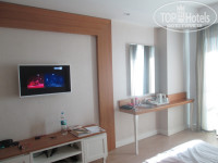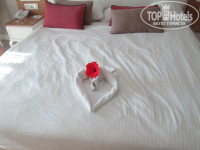 Приехали рано утром. Сразу повесили браслеты, предложили позавтракать , переодеться и идти на пляж, так как заселение после 13:00. Мы так и сделали. Правда было неудобно на пляже без полотенец. Время пролетело незаметно. И вот мы уже заселены. Номер достался неплохой. Вид на соседний отель. Но в этом были свои плюсы. Можно было выходить на балкон и сидеть там спокойно, хоть в нижнем белье. Номера с видом на бассейн - у них балконы прозрачные со всех сторон. Правда шел запах сильный, когда готовили гриль в соседнем отеле. Сам по себе номер уютный, комфортный. К стеклянной двери привыкли, не напрягала. Но все таки это минус. Туалет хотелось бы иметь с закрытой дверью. А в душе не хватало все время полочек для всяких тюбиков. За Сейф, мини бар конечно плюс, а вот фен конечно хиленький. Хорошо, что брали с собой. Когда в номере никого нет, снаружи светится табличка с номером комнаты. Но при этом утром к нам все равно ломилимь пополнить мини бар и убрать комнату. Немного не тактично.