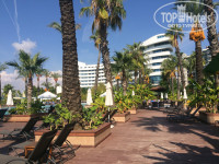 Территория отеля нам очень понравилась, большая , супер ухоженная. Гулять одно удовольствие. Есть много релакс зон 16+. Понравилось то , что у бассейнов не плитка, а деревянный пол- и красиво, и не скользко. Водные горки для детей нормальные, но их маловато. Взрослым не интересно на них.