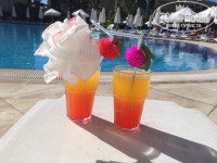 Отдыхали перед закрытием отеля, возможно это было причиной среднего питания и сервиса ( уборки и отношения персонала) Из питания есть всегда, что покушать, но говядины и баранины небыло не разу. Курица, индейка, рыба разная, макароны, фри, пюре картофельное каждый день! Завтрак как и везде в 5 пекут блины, плечики, много выпечки, каша, яйца, омлет, не много фруктов. Обед незнаю не ходила, ели у бассейна пиццу и другой фастфуд. Ужин нормальный, быстро фрукты кончаются) наверно мешками с собой русские набирают))) Апельсины, персики, нектарины, яблоки,груши, виноград, грейпфрут.