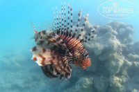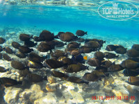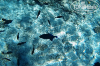 Для тех, кто не очень интересуется рыбками, плохо плавает, просто рай. Песок, есть где плавать. Вода мутная, даже утром. Только возле самого берега прозрачная. Но парадокс в том, что возле берега, я повстречала жирную добычу. Сняла видео со скатом, фото с рыбами на расстоянии руки, они не боятся, прямо лезли в камеру. Если прилив(меняется, зависит от лунных суток), то можно проплыть над рифом, на глубину. Если отлив, то плавать можно, а вот добраться к глубине не получится. У отеля своего понтона нет. На соседний мягкий понтон вас не пустят. Хотя выйти из моря по нему можно. Перевернуть только нужно свой браслет белой стороной, чтоб менеджеры соседнего отеля не ругали бич боев.