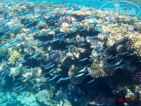 Риф, конечно великолепный, прямо сады из кораллов. Для дайвингистов там раздолье. Хотя много есть и мертвого серого коралла. Вода местами мутная, иногда видимость была практически нулевая. Думаю, что корабли, которые привозили дайверов и не глушили моторы, гоняли водные потоки, баламутили воду. Еще на поверхности воды, была пленка, которая не давала нормально освещать риф даже днем. Может быть еще на освещение рифа влияло большое количество мелкой рыбешки, которая плавала целыми стаями.
