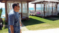 Пляж песчаный, замечательный,красивый и действительно очень длинный,лежаки всегда пустые есть,да и вообще лежаков на территории очень много.Тем кто не может в воду заходить по камням идите к новому пирсу,там песчаный вход в море.