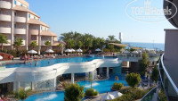 Почитав отзывы решила,что буду просить номер в Гармонии,но нас туда сразу и заселили. Номер оказался на нулевом этаже с видом на бассейн,выйдя на балкон ребенок пролез сквозь ограждение балкона и оказался на дорожке к танцполу,пошли менять номер на другой,без проблем дали номер на 1-м этаже,с видом на море и бассейны и без каких либо чаевых там заграждение было без щелей) . Номер нормальный,принадлежности для душа в дозаторах-шамнунь и гель для душа,да есть минусы как не закрываемая на замок дверь на балкон и странные двери в туалет и душ,но все это не замечаешь когда увидишь шикарную территорию отеля и дружелюбных турков,которые всегда готовы помочь,мило улыбаются и восхищаются твоим белобрысым ребенком) При 100% заполненности отеля ты этого не чувствуешь,всегда есть куча свободных мест в ресторанах,свободные лежаки и полупустые бассейны!