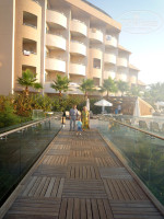 Нам повезло в день нашего приезда открыли тоннель к морю из корпуса Гармония,который находится на -2 этаже,по тоннелю с приятной музыкой идти минуты 2 до пляжа и то,что отель находится через дорогу от пляжа даже не замечаешь,так как эту дорогу не видишь,а проходишь под ней . Территория отеля огромная и красивая,красивейший новый пирс с мягкими кроватями со стороны Гармонии,возле основного корпуса тоже есть пирс,но намного скромнее и старее,очень много бассейнов,штук 12 точно,есть бассейны с морской водой,огромный взрослый аквапарк,горок 10 наверное. Ну а для детей это просто рай! 2 больших детских аквапарка, луна парк,детские клубы,детские площадки,детское меню,детская анимация и дискотека каждый вечер,пони на которых можно покататься.