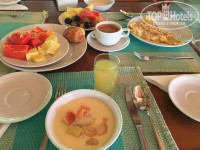 Питание: (мы брали полный пансион) разнообразное, много фруктов: папайя, ананас, яблоки, дыни, гуава, маракуйя, бананы; вкусные десерты, и всего впринципе достаточно, для нас было минусом- мясо не всегда вкусное: и выбор вроде есть: курица, говядина, баранина и рыба, но вот Мясо в большинстве попыток оказывалось резиновым, но как говориться на вкус и цвет. Кофе в основном ресторане зерновое, вкусное, а вот чай пакетированный Липтон, и только чёрный. Воды официанты наливают каждому в бокалы, сколько захотите.