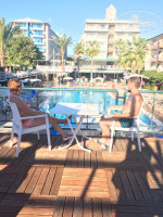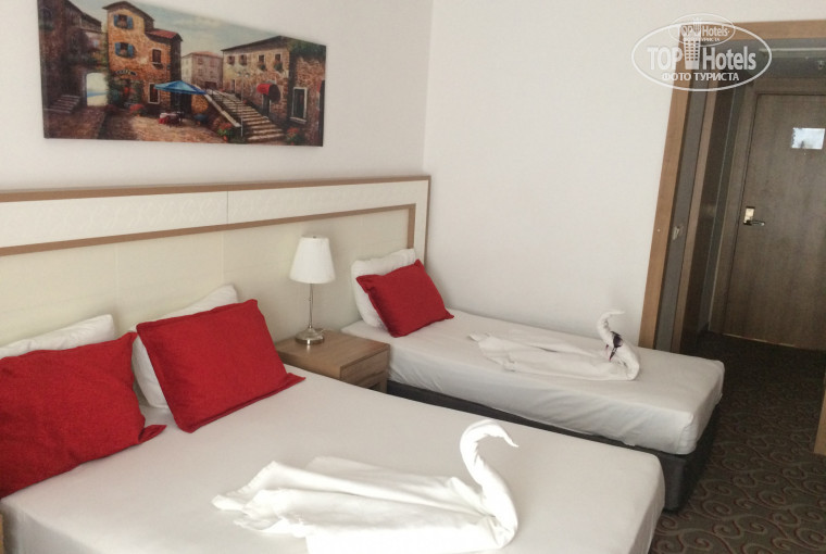 Отдыхали с мужем и сыном 15 лет. Заселение прошло быстро, номер маленький, но уютный, убирали каждый день, один раз даже скрутили нам лебедей. Полотенца меняли, если мы сами их оставляли на ванной. Вода, кола, спрайт пополняли каждый день. Еда на завтрак и обед однообразная, но голодным не останешься. Ужин конечно "обжираловка", очень много разных блюд, мясо, рыба, суши,салаты, зелени и фруктов очень много. Спиртное для нас было не таким важным фактором, поэтому ничего не могу сказать. Хотя, наши соотечественники, умудрялись напиться и устроить какую- нибудь разборку, плохим алкоголем, как тут пишут. Территория небольшая, ухоженная, все в шаговой доступности, для нас это было плюсом. Море шикарное, чистое, теплое, просто СУПЕР!!! Персонал старается, шуршит, жалко было ребят , которые постоянно собирали посуду на пляже, они только уберут, люди опять несутся с тарелками и стаканами. Анимация никакая, очень скучно было по вечерам. Единственно, очень понравился певец с живой музыкой, классно пел "Катюшу", поднимал весь российский народ. Ездили сами в Аланию, минут 40 наверное, 2 доллара с человека, каждые 10 минут автобусы проезжают мимо отелей, очень там понравилось, поднимались на фуникулере на верх, красота неописуемая. Базар неплохой, нужно торговаться, сразу ломят цены раза в два. Разочарование только от Пегаса, украли у нас два дня.Вылет перенесли 12.10. на 21-00, добрались до отеля 13.10 в 01-30 ( украли целый день), а выезд из отеля поставили 20.10. на 04-00 утра ( опять день украли). Из 9 дней осталось 7 дней. Хочу претензию писать, кто знает как, подскажите, пожалуйста. Но чтобы не портить себе отпуск решила быть на позитиве. Но, а в остальном, нам все понравилось. Спасибо за отдых!